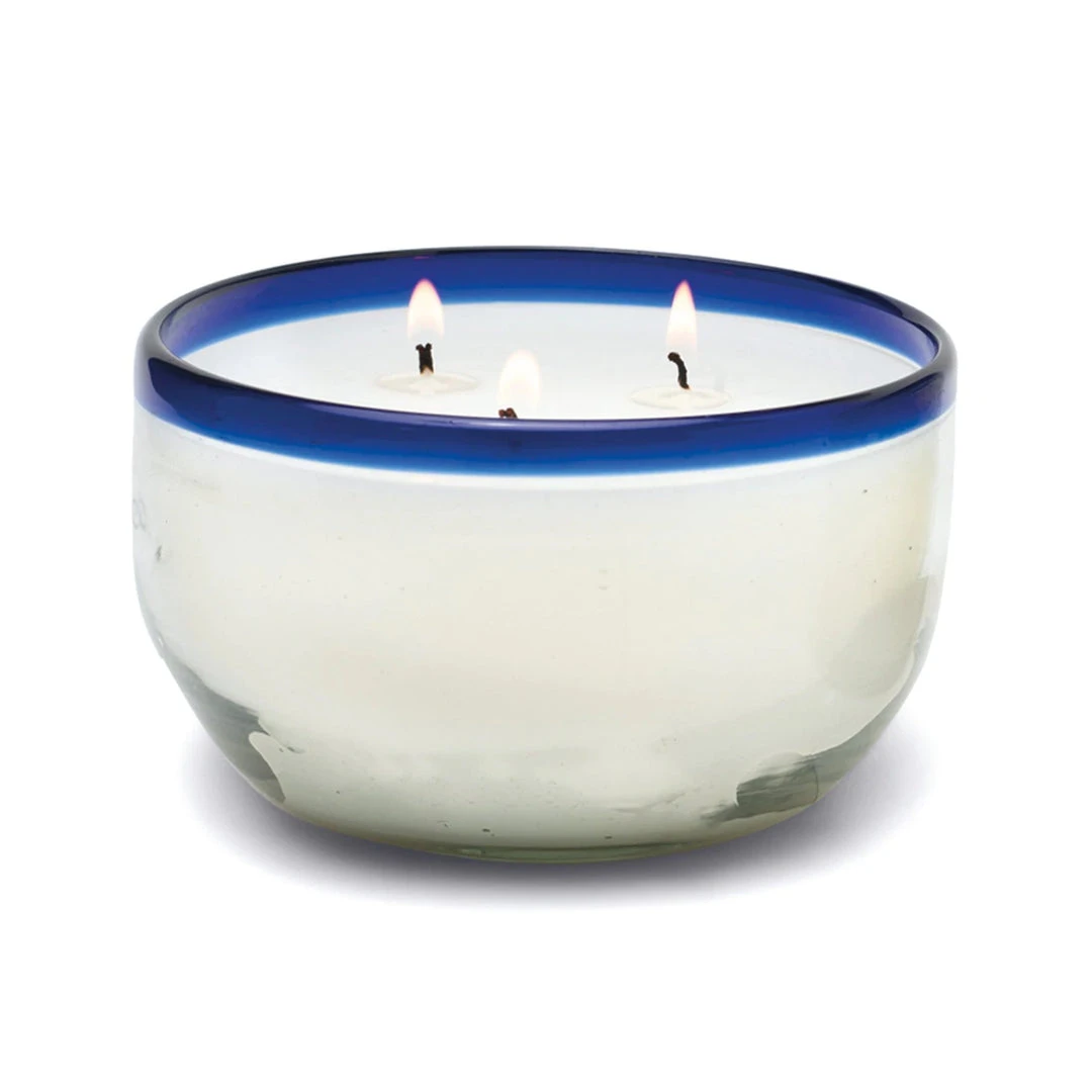 Welcome beach vibes into your home with La Playa. Each vessel is hand-blown bubble glass and will vary in size, shape, and the amount of bubbles – making each glass uniquely yours! These vessels are food-safe to use once the candle has burned and even feature our favorite guacamole recipe on the back of the dust cover!