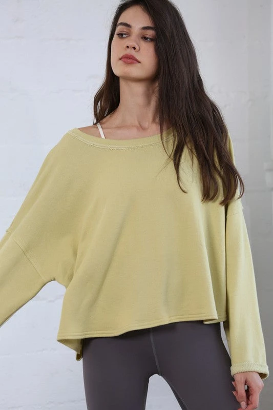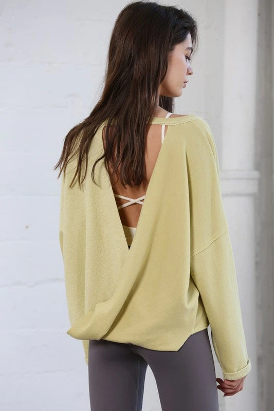 Knit French Terry Back overlap detailed Long Sleeve Top
