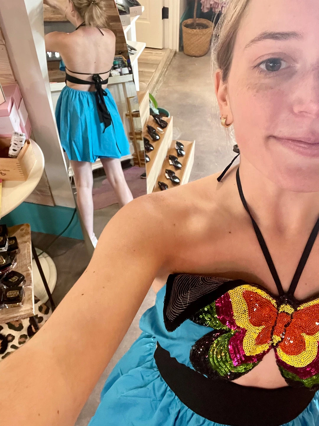 Queen of Sparkles cut-out sequin butterfly halter dress.