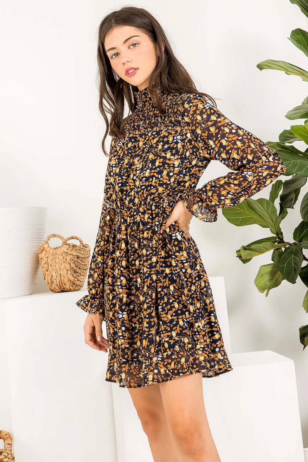 Long Sleeve Smocked Dress.