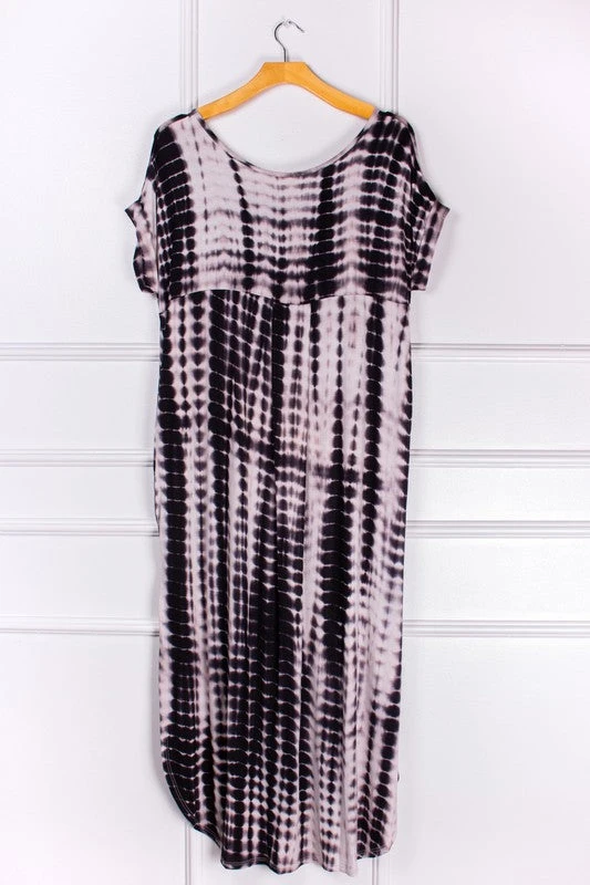 Tie-dye short sleeve maxi dress with side pockets and slits