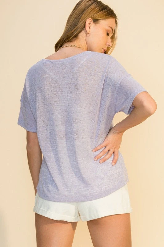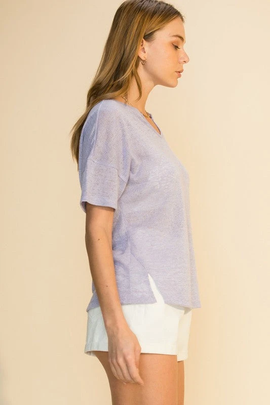 NOTCH NECK SPLIT HEM SOLID TEE