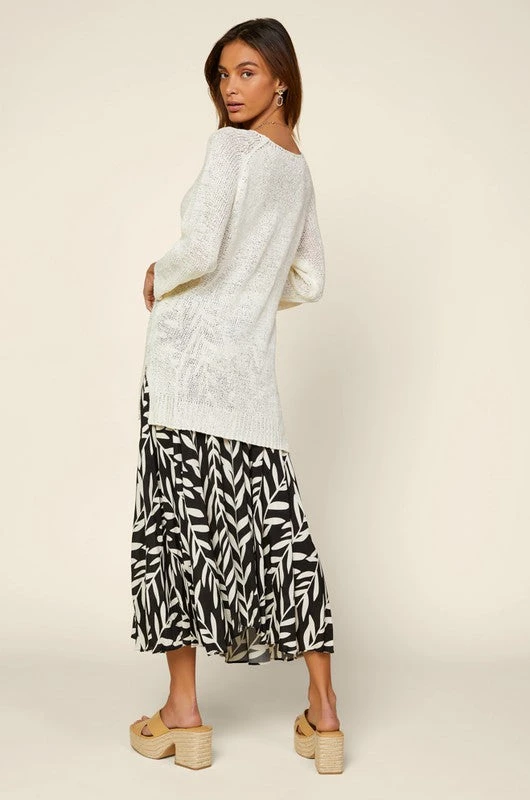 Printed midi skirt with pleated detail.