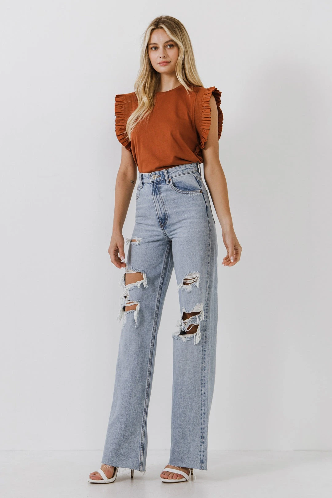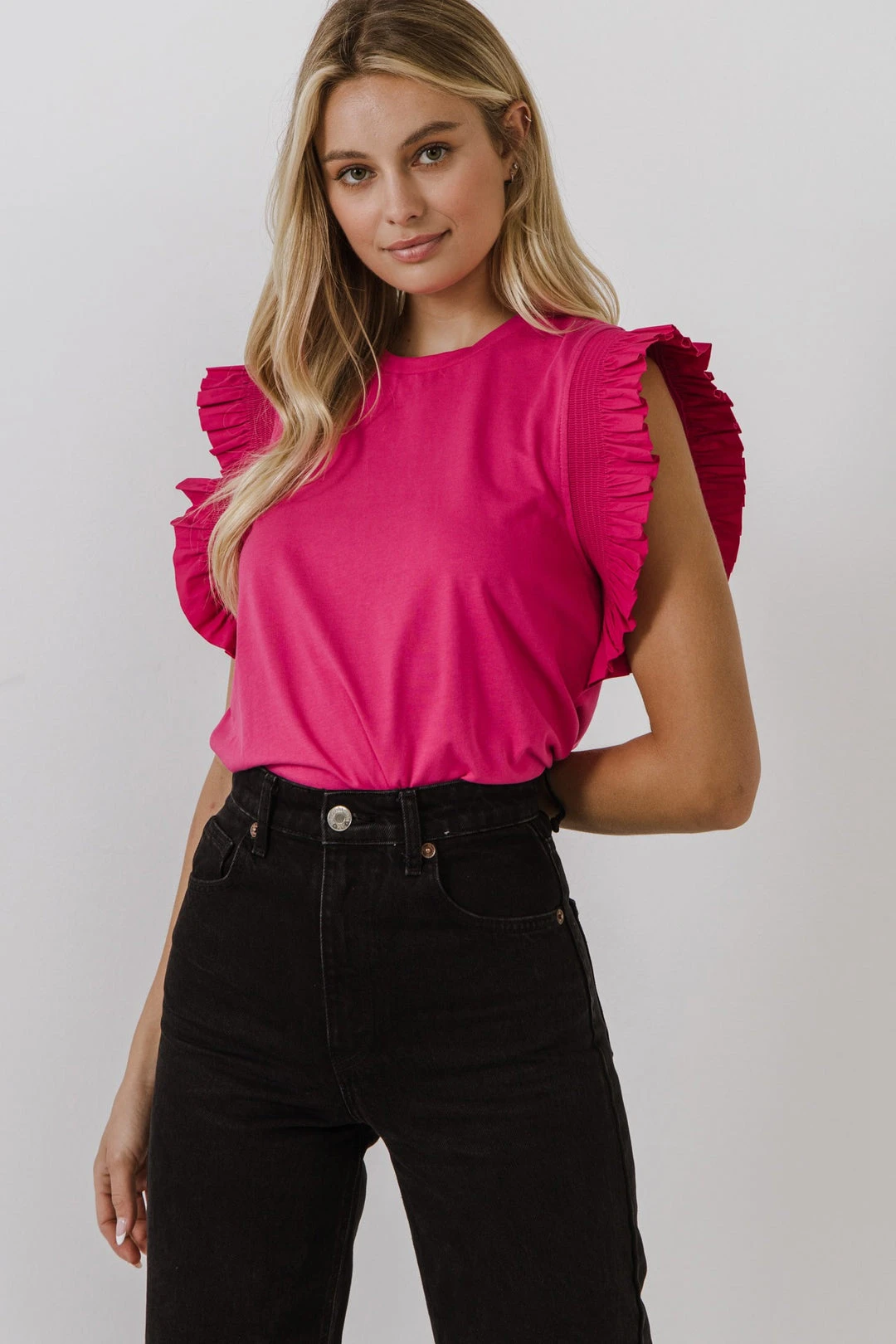 Poplin Top with Ruffle Detail
