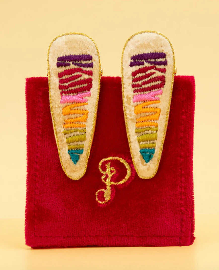 Our hair clips offer just the right amount of cuteness to your look and the rainbow print zebra is as colorful and varied as you! Presented on a velvet card for gifting, these come with a teeny tiny complimentary Powder gift bag as well to treat that special someone, or yourself!