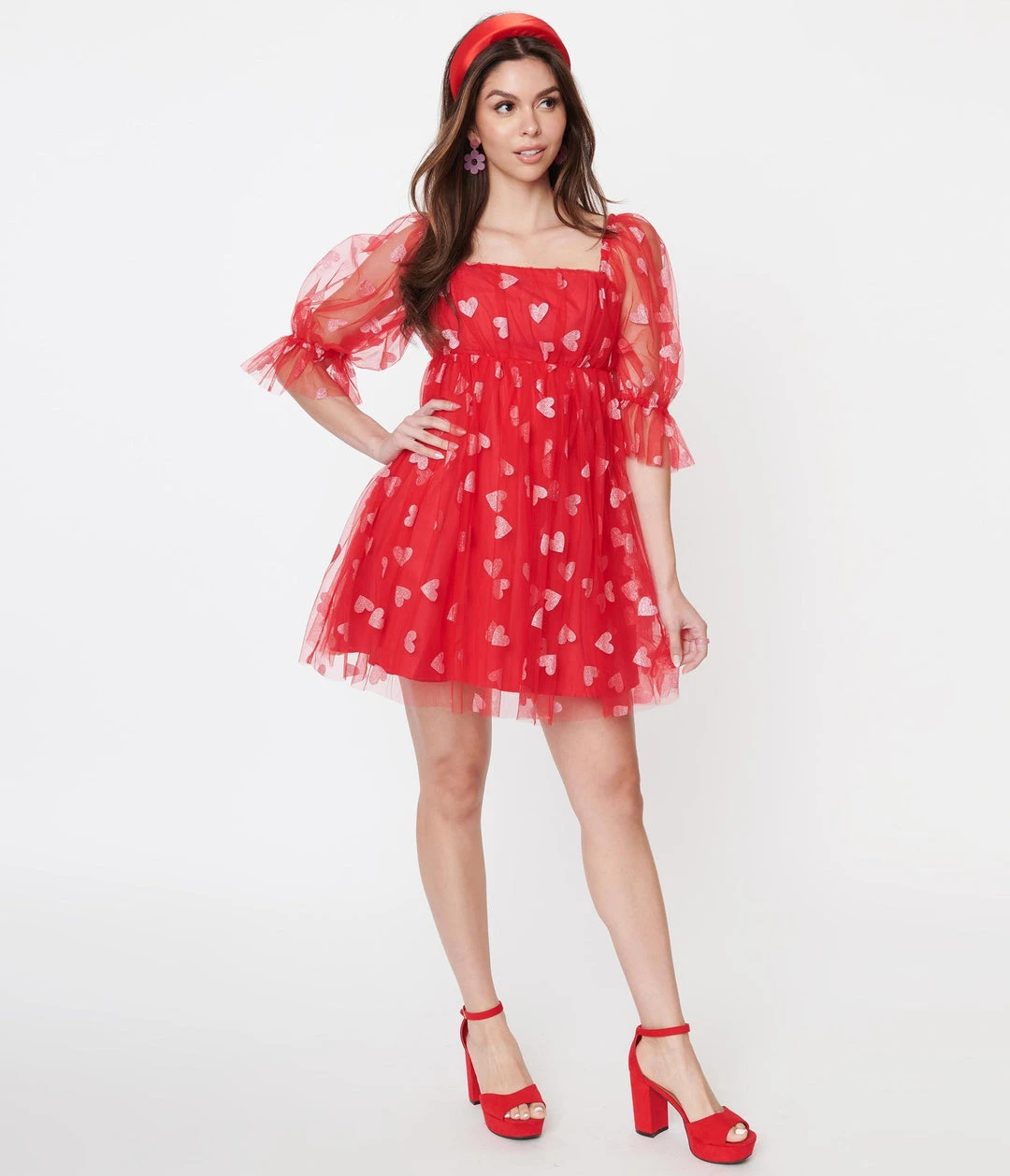 Red & Pink Glitter Hearts Love Babydoll Dress