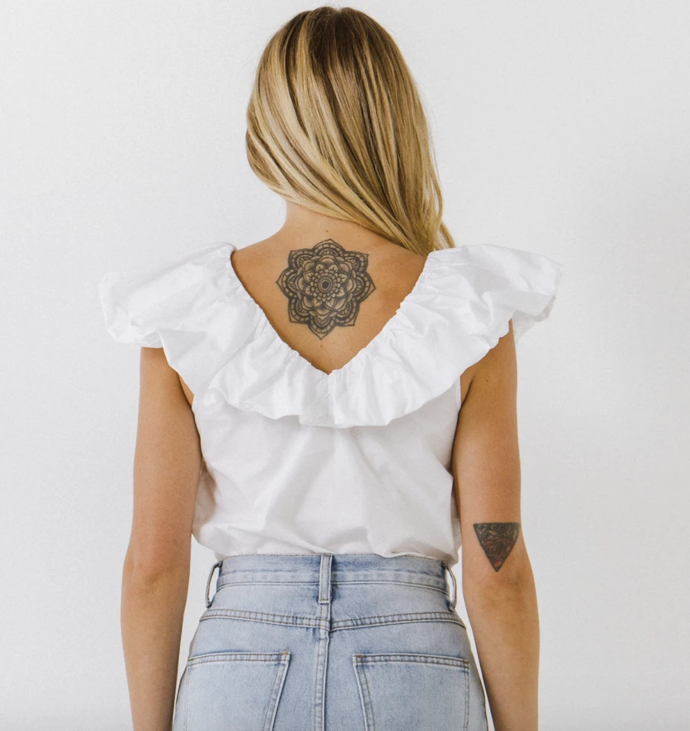 Ruffle Detail Around Neckline. V-Neckline. Sleeveless.Â