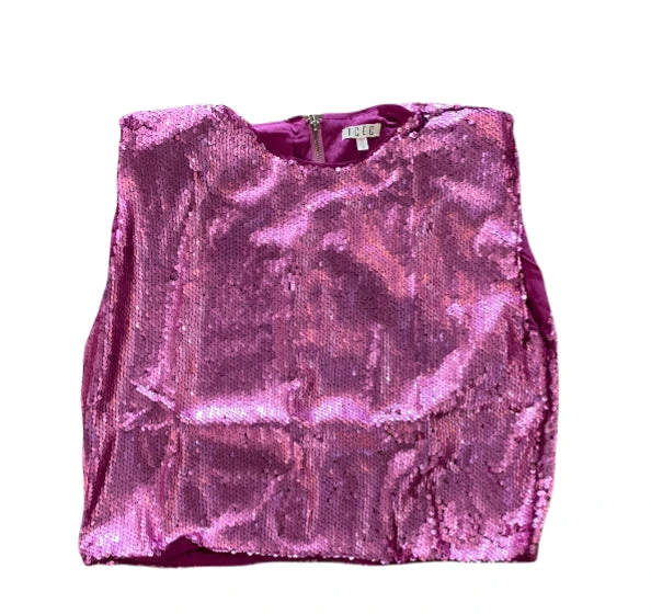 Sequin muscle top with padded shoulder and back keyhole with button closures. Can be worn as matching set.Â