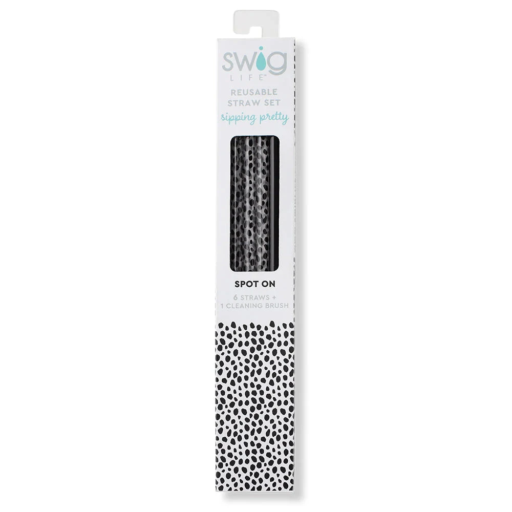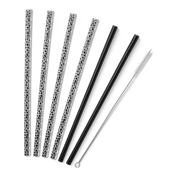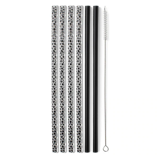 - 4 printed straws, 2 solid color straws, and 1 cleaning brush