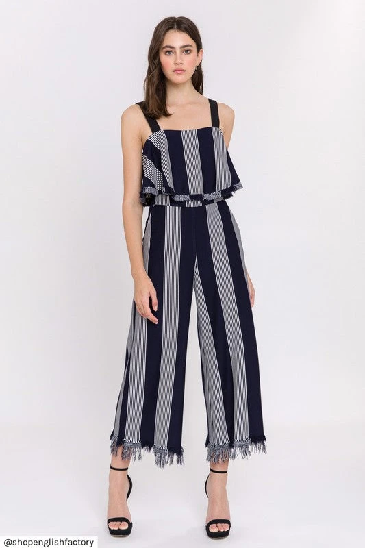 Matching Set: Stripe Fringe Hem Wide Pants