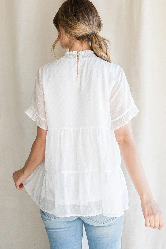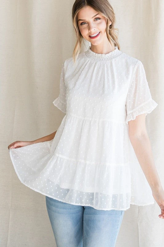 Swiss Dot Smocked Neck Tiered Top