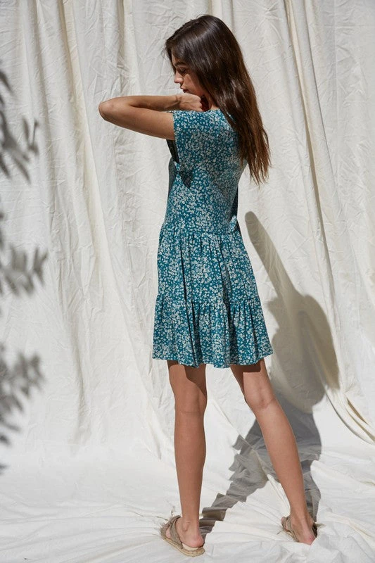 Knit Viscose Jersey Sort Sleeve Ruffled Button Down Strap Loose Fit DressÂ