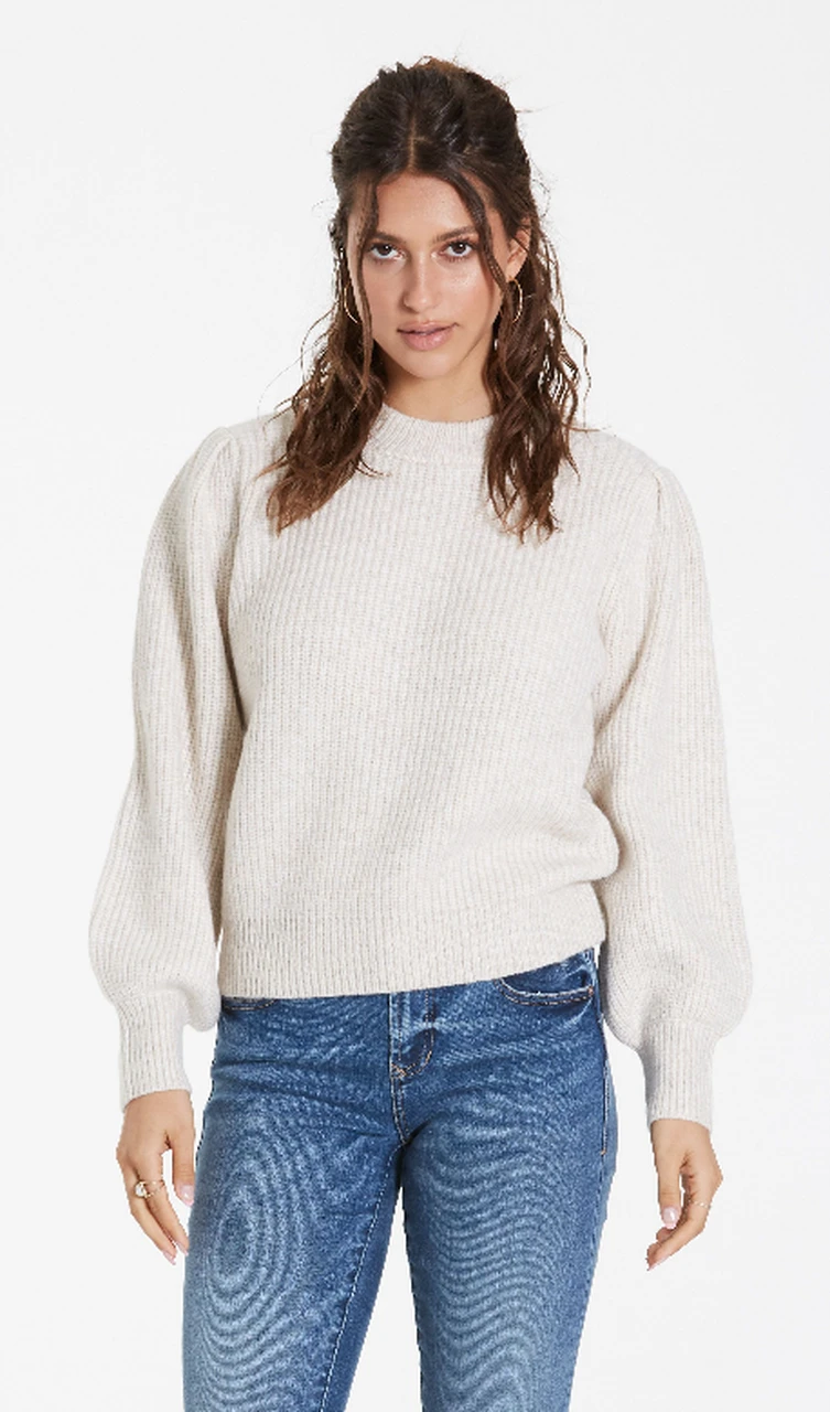Crew neck sweater with puff sleeves.