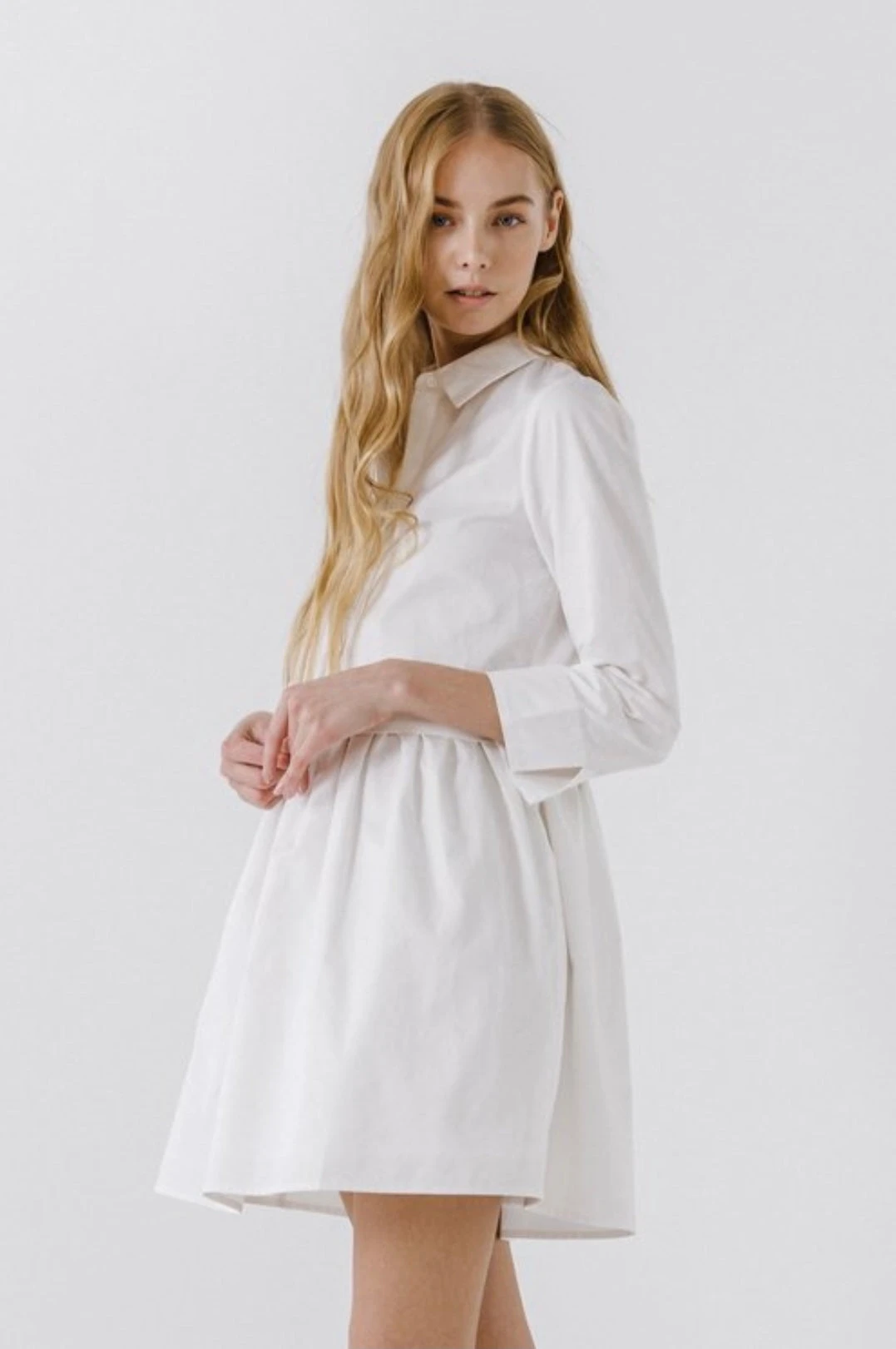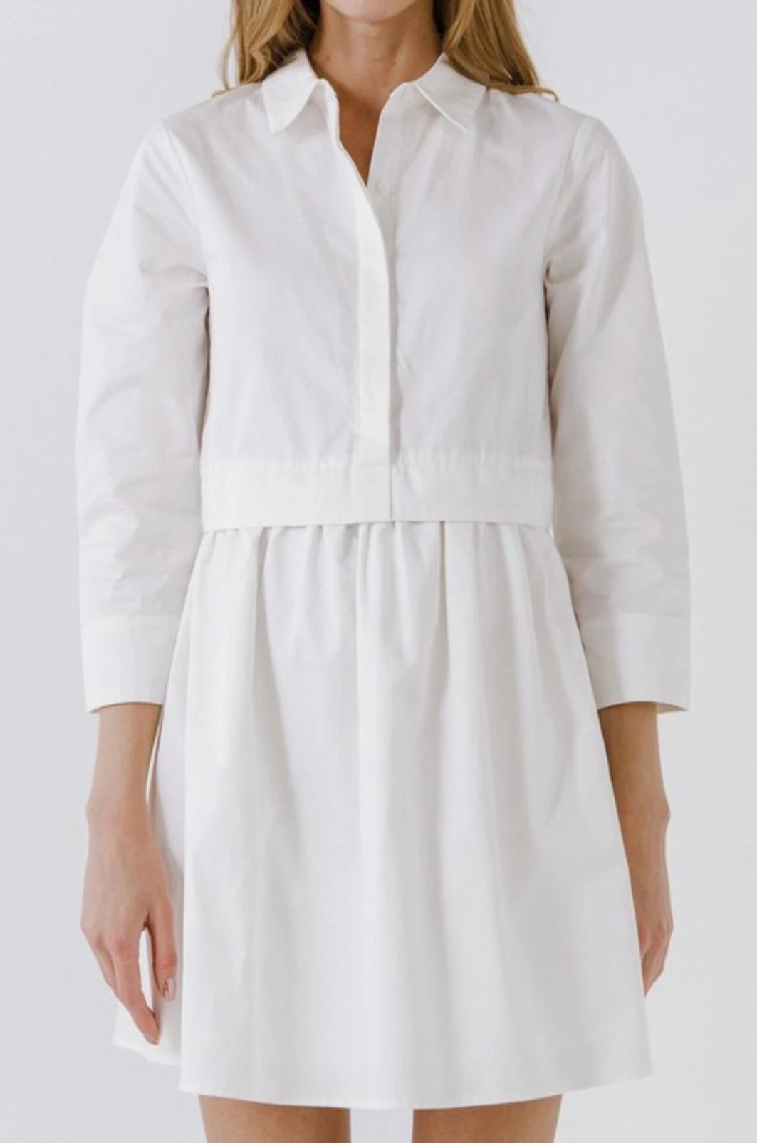 Solid Woven, Collard Half Placket, 3/4 Sleeves