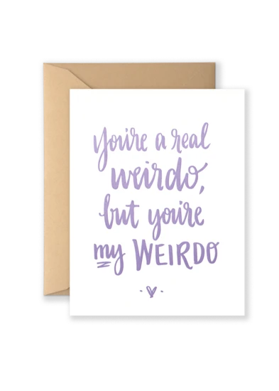 Show the real weirdo that you love how much they mean to your weirdo self with this cute hand-lettered greeting card.